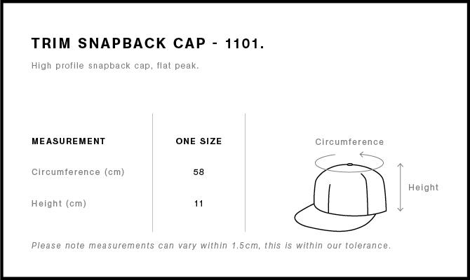 • Plastic snapback, green under-peak lining, stitching eyelets, self fabric dome at top